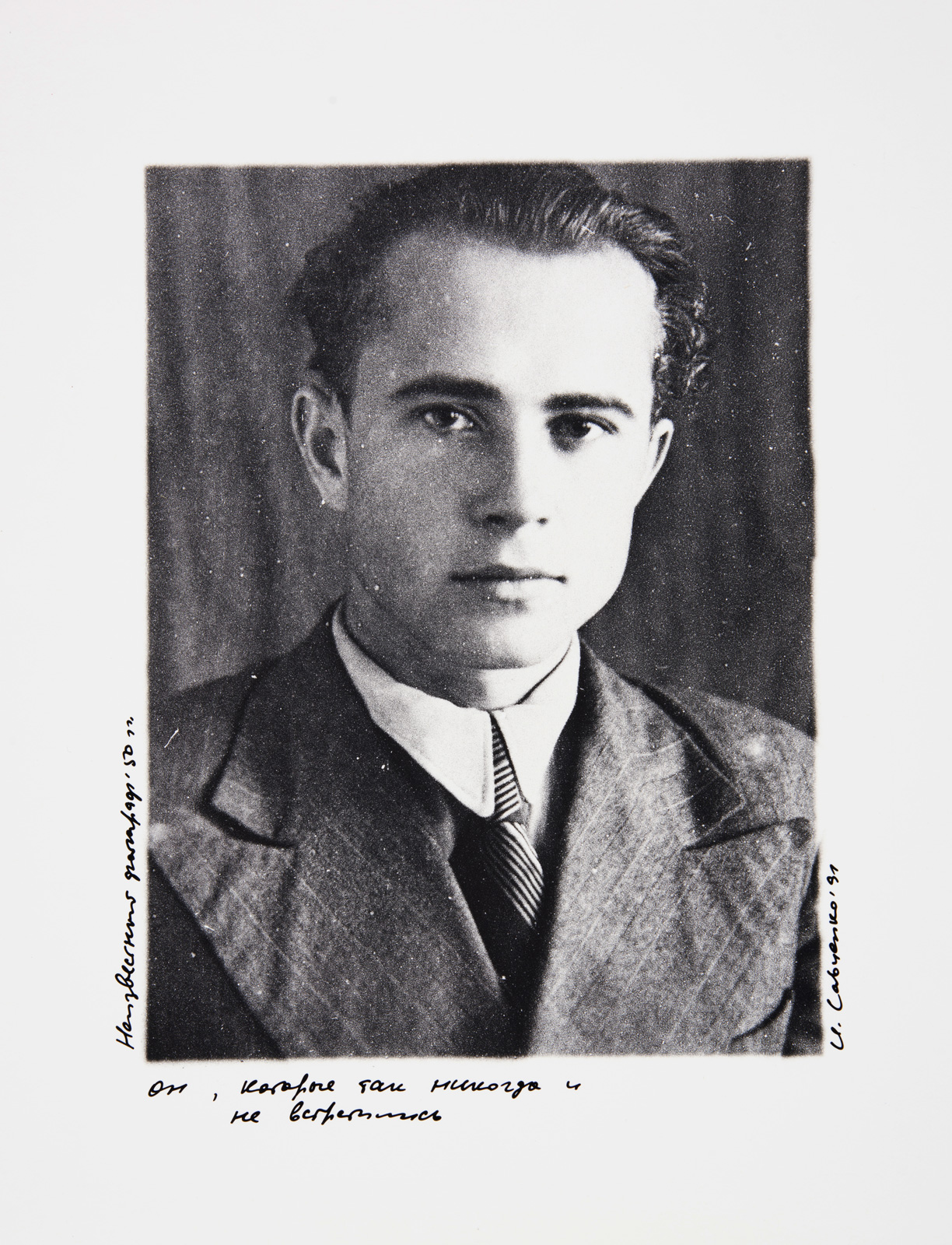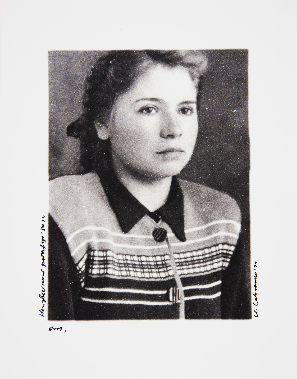 her portrait, taken by him only once, the last time they met; the lens cap he had forgotten was left on